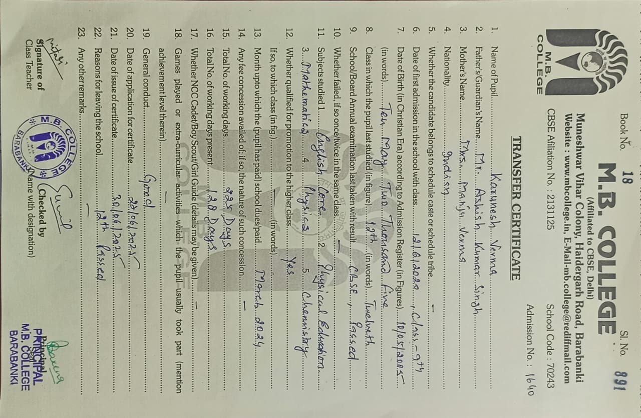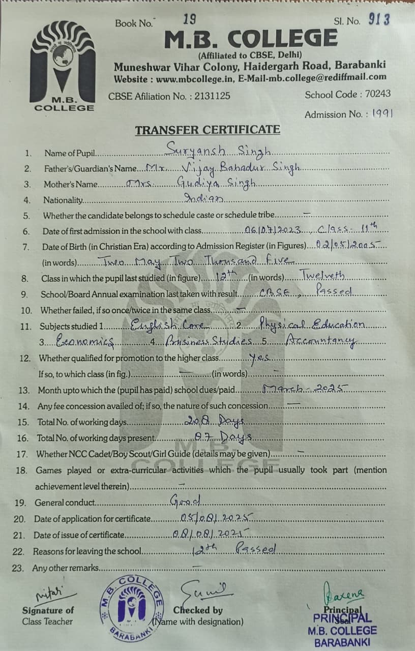 List of TC Issued.