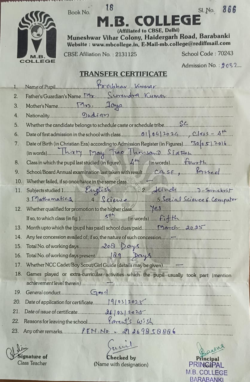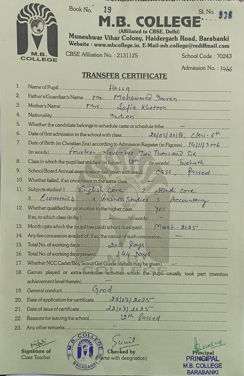 List of TC Issued.